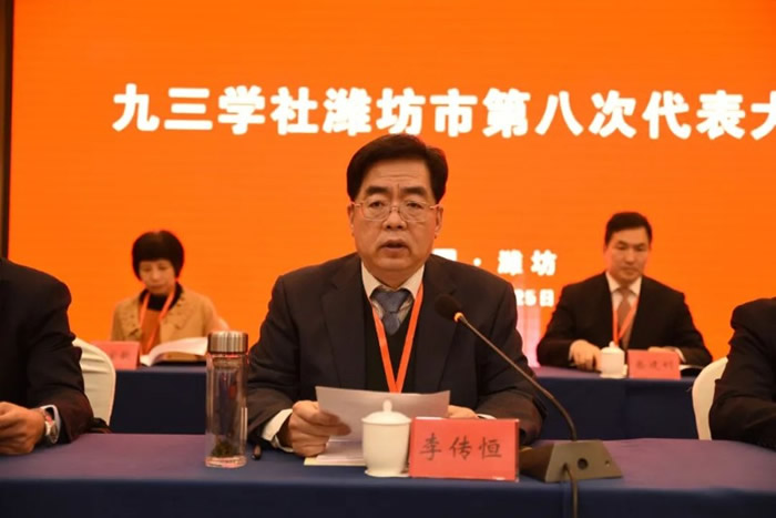 李传恒代表九三学社潍坊市第七届委员会作了题为《牢记初心使命 深化责任担当为加快建设人民满意的现代化品质城市努力奋斗》的工作报告。报告全面回顾九三学社潍坊市第七届委员会的工作和成绩,总结工作中的主要经验和体会,对新一届社市委提出了建议。
