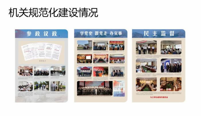 九三学社威海市第三届委员会在九三学社山东省委和中共威海市委的正确领导下,在中共威海市委统战部的关怀帮助下,坚持以习近平新时代中国特色社会主义思想为指导,深入学习贯彻中共十九届六中全会精神,不断加强中国特色社会主义参政党建设,塑造议政建言、中国新型政党制度研究、培育和践行参政党政治美德“三大品牌”成效突出,各项工作取得显著成绩。
