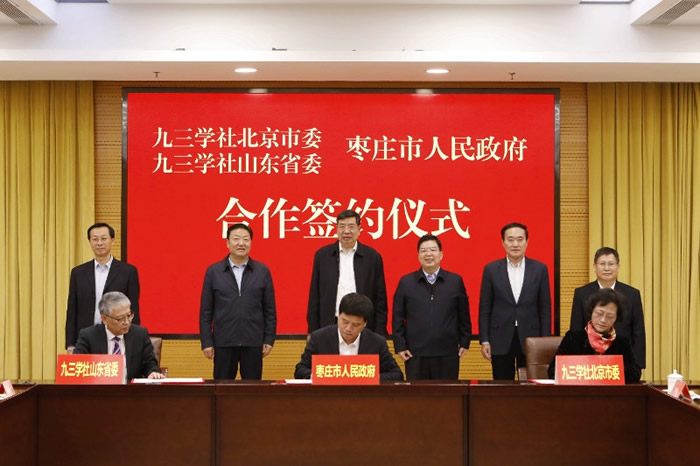 12月12日上午,九三学社山东省委、九三学社北京市委与枣庄市人民政府合作签约仪式在枣庄市市政大厦举行。省人大常委会委员、九三学社省委专职副主委宋尚桂,九三学社省委副主委、省住房和城乡建设厅厅长王玉志;九三学社北京市委员会住建部支社主委、中国城市规划设计研究院副总规划师詹雪红;枣庄市委书记、市人大常委会主任陈平,市委常委、秘书长朱国伟,市人大常委会副主任刘志才,副市长李守江,市政协副主席、九三学社枣庄市委员会主委张德琦出席仪式。市委常委、常务副市长孙起生主持仪式。