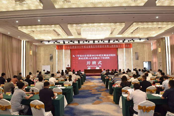2022年7月18日—19日,九三学社山东省委员会2022年度直属基层组织新社员暨入社积极分子培训班在莱芜举办。九三学社省委会秘书长兼组织部部长岳鹏出席开幕式。
