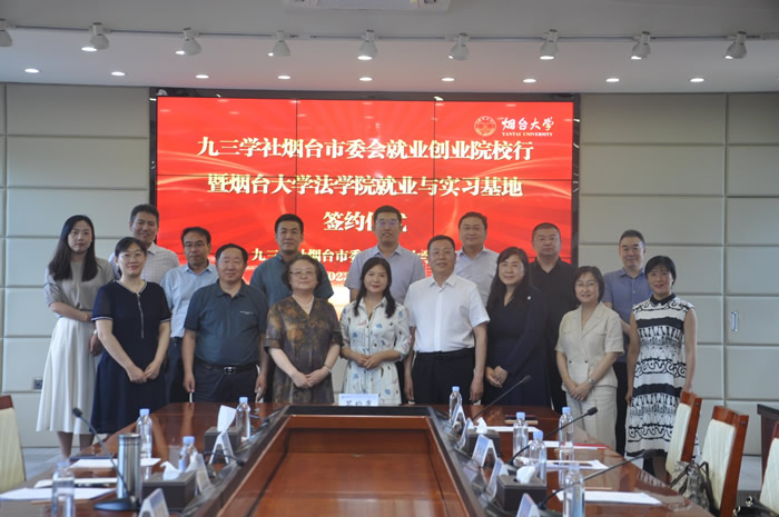 6月9日,九三学社烟台市委员会就业创业院校行暨烟台大学法学院就业与实习基地签约仪式成功举办。烟台大学法学院党总支书记段志国、法学院院长宋振武,九三学社烟台市委员会副主委牟冬梅一行11人参加签约仪式。九三学社烟台市委员会副主委、烟台大学法学院副院长王光明主持仪式。 宋振武致欢迎辞,并从学院建设、师资队伍、科研成就、人才培养等方面详细介绍了学院基本情况。宋振武表示,烟台大学法学院始终将人才培养作为首要工作任务,在系统培养学生法学知识的同时注重实务能力教育,积极为学生拓宽实践之路,让学生将专业知识转换为实际工作效果。