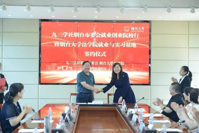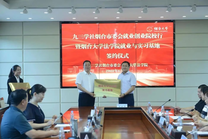 牟冬梅在讲话中表示,本次活动是九三学社烟台市委员会“凝心铸魂强根基、团结奋进新征程”主题教育的具体举措,也是深度融入我市“智荟烟台·同心四行”活动的实际行动。就业与实习基地建设有利于高校、律所间的优势互补、资源共享,签约授牌只是合作的起点,为我市培育高素质法律人才才是目的和终点。社市委将充分发挥智力密集、人才荟萃、联系广泛的优势,与烟台大学法学院深化协作,共同为促进法治人才建设作出贡献。希望签约的各律所与烟台大学法学院精诚合作,强化沟通,在高校人才培养、学生高质量就业和专项调研、社会服务等方面携手奋进,实现互利共赢。 会上,九三学社烟台市委员会法治专委会成员林琼、赵岩杰、韩礼御、原丰香、张绍飞、温韬、孙贵明分别代表山东智宇律师事务所、山东舜公律师事务所、山东岳平律师事务所、山东乾元律师事务所、北京盈科(烟台)律师事务所、山东博旭律师事务所、山东德扬律师事务所介绍了律所的有关情况。烟台大学法学院与社市委法治专委会就毕业生就业方向、律所优势、用人需求等方面开展了交流。与会双方一致认为律所与高校之间应加强联系,促进产教融合,培养复合型人才,实现律所、高校合作共赢。