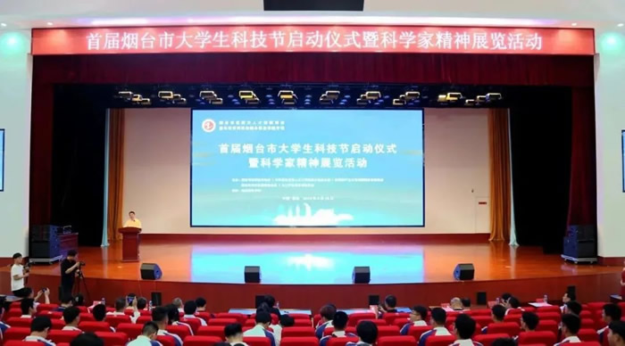 6月16日,首届烟台市大学生科技节启动仪式暨科学家精神展览活动在烟台职业学院产教融合工程中心报告厅举行。烟台市政协副主席、九三学社烟台市委员会主委秦松,烟台职业学院党委书记陈新姿,烟台市科协党组书记、主席陈海涛出席并致辞。烟台职业学院副校长丁春燕主持,烟台市委人才办、共青团烟台市委、九三学社烟台市委员会、烟台市海洋发展与渔业局分管领导和相关科室负责人,各赛事承办单位代表,高校师生代表及媒体代表500余人参会。