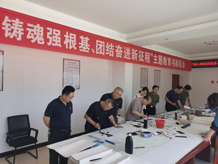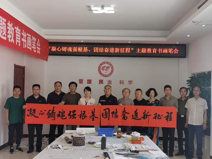 为彰显我国新型政党制度的独特优势,用习近平新时代中国特色社会主义思想凝心铸魂,不断巩固多党合作共同思想政治基础,推动“凝心铸魂强根基、团结奋进新征程”主题教育不断走向深入,7月5日上午,社济宁市委会在九三学社曲阜市委员会优秀传统文化“两创”实践基地举办“凝心铸魂强根基、团结奋进新征程”主题教育书画笔会。九三学社济宁书画院和社曲阜市委会部分书画家齐聚一堂,用画笔抒写豪迈激情,讴歌新时代新征程。社济宁市委会专职副主委刘要武,中共曲阜市委统战部副部长、市工商联党组书记孔艳华,中共曲阜市委统战部四级调研员丛衍忠,社曲阜市委会主委张新忠参加活动。社曲阜市委会承办本次活动。