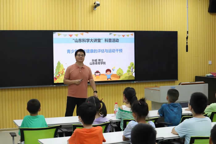 随后山东体育学院孙威博士以“青少年脊柱健康的评估与运动干预”为主题开展了科普讲座。孙威博士深入浅出、生动有趣的讲解让学生们了解到青少年脊柱侧弯的危害。青少年应加强体育锻炼,有效预防脊柱侧弯的发生。现场的同学们积极主动的参与了青少年颈椎保健操的学习。  讲座结束后,由专业人员对参加活动的学生们进行了脊柱侧弯筛查。通过视诊、触诊、仪器测量等方式,为学生们进行详细的脊柱检查,检测学生们脊柱发育情况,并结合筛查结果给出了相应的指导建议。