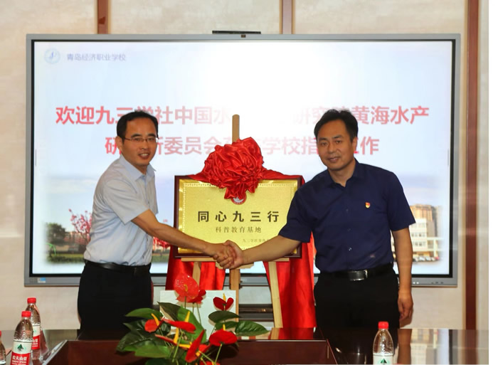 6月26日上午,由九三学社黄海水产研究所委员会承办的“同心九三行科普教育基地”授牌仪式暨“同心九三行科普教育讲堂”活动在青岛经济职业学校举行。社青岛市委会办公室主任刘春玉、科普工作专委会主任郎云鹏、黄海水产研究所委员会主委谭志军等一行9人参加授牌仪式。