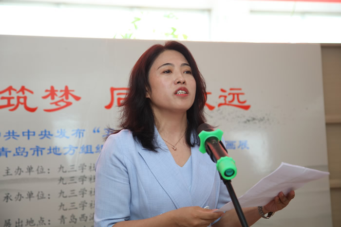 社市委会专职副主委于鹏,秘书长王波;黄岛区政协副主席许传辉;中共黄岛区统战部副部长罗薇;青岛经济技术开发区管委副主任李博;黄岛区文旅局局长副局长郑桂欣;青岛西海岸新区文联党组成员、副主席薛建波、副秘书长薛玉世;黄岛区隐珠街道办事处宣传委员周显云;区文化馆副研究馆员陈知保等出席了活动。出席本次活动的还有九三学社青岛市和黄岛区委会的社员代表。 九三学社青岛书画院院长戴金梁,副院长单继宏、兰伟,顾问王祖江、窦世伟,副秘书长张维柱;九三学社青岛书画院创作中心副主任王秀泉、缪九永、刘玉屏;九三学社青岛书画院崂山创作中心主任吕竹玉;青岛当代艺术研究院副院长胡伟业;青岛女画家协会国画学会会长黄小平;青岛高新区竹君堂李香芝艺术总监、青岛美协志愿服务艺委会副秘书长刘莹;九三学社青岛书画院老师郝娜;九三学社青岛西海岸书画院院长杨敏,副院长封宁乾、高学礼,秘书长耿涛;青岛书法家协会理事李铭强、段洪亮;青岛灵山书院院长杨成才;清石画院院长石坤祖;九三学社莱西市书画院副院长赵仁华、王庆华。 开幕仪式由九三学社青岛市委会秘书长王波主持。 罗薇在讲话中指出,九三学社黄岛区委会在九三学社青岛市委会的正确领导下,各项工作均取得长足进步,为新区高质量发展贡献了智慧和力量;她希望,黄岛区委会要以此次“凝心铸魂强根基、团结奋进新征程”主题书画展为契机,进一步凝聚共识、弘扬主旋律、传播正能量,讲好多党合作好故事,打造更多的艺术精品,积极建言献策,为助力文化强区目标的实现贡献更多九三力量。 戴金梁在讲话中指出,文艺是时代前进的号角,最能代表一个时代的风貌,最能引领一个时代的风气。我们九三艺术家们将以中共二十大精神为指导,坚定文化自信,担当使命,奋发有为,用手中的画笔弘扬主旋律、传播正能量,努力创作更多无愧于时代的优秀作品,弘扬中国精神、凝聚中国力量,让中华文化展现出永久魅力和时代风采。 于鹏在讲话中指出,举办书画展,通过艺术的形式,深情赞颂党、赞颂祖国、赞颂人民,生动展示九三学社青岛地方组织在党领导下凝心聚力取得的辉煌成就,深情表达九三学社社员坚定的文化自信和深厚的爱国情怀,具有重要的意义。她希望,九三学社艺术家和书画爱好者深入学习贯彻中共二十大精神,坚持以人民为中心的创作导向,努力用手中的画笔讴歌伟大的时代,讴歌美好新生活,为弘扬优秀传统文化,增强中华文化自信做出新的更大贡献! 本次主题书画展是九三学社青岛市委会 “凝心铸魂强根基、团结奋进新征程”主题教育的系列活动之一,共展出作品50余幅。参展的书法作品有浑然古朴的篆隶,有工整隽秀的楷书,有挥洒自如的行草,形式多样,异彩纷呈;绘画作品涉及花鸟、山水、人物,题材繁多,笔墨淋漓,色彩斑斓,具有极强的观赏性和感染力。 九三学社青岛书画院院长戴金梁,副院长单继宏、兰伟,顾问王祖江、窦世伟,副秘书长张维柱;九三学社青岛书画院创作中心副主任王秀泉、缪九永、刘玉屏;九三学社青岛书画院崂山创作中心主任吕竹玉;青岛当代艺术研究院副院长胡伟业;青岛女画家协会国画学会会长黄小平;青岛高新区竹君堂李香芝艺术总监、青岛美协志愿服务艺委会副秘书长刘莹;九三学社青岛书画院老师郝娜;九三学社青岛西海岸书画院院长杨敏,副院长封宁乾、高学礼,秘书长耿涛;青岛书法家协会理事李铭强、段洪亮;青岛灵山书院院长杨成才;清石画院院长石坤祖;九三学社莱西市书画院副院长赵仁华、王庆华等应邀参加活动。在展览现场,艺术家们向嘉宾们详细阐释了参展作品在艺术创作中的创作理念、构思手法、立意特点以及风格演变。