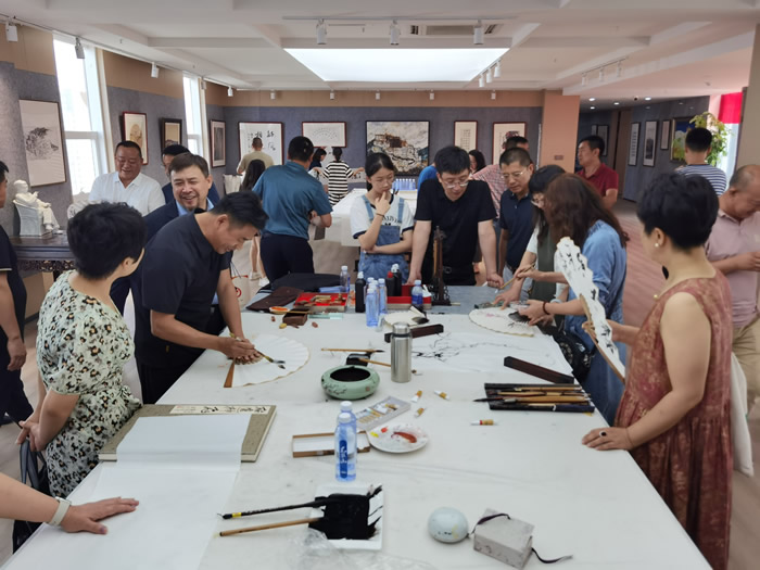 在笔会现场,艺术家们挥毫泼墨,相互交流,切磋技艺,现场创作的一幅幅书法、绘画作品,充分展示了厚重的人文底蕴,体现出鲜明的民族特色和新时代的艺术气息,彰显了中华传统文化的精髓和艺术的无穷魅力。(九三学社青岛市委会 胡四春)