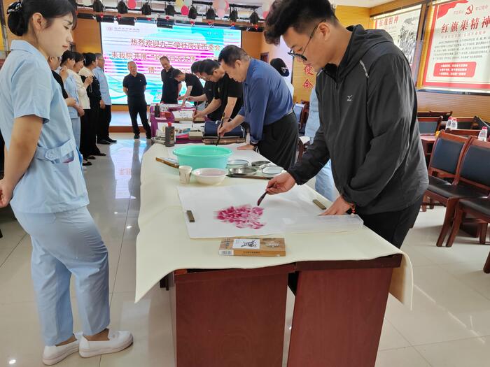两个小时的时间里,书画家们共创作书画作品40余幅,笔墨飘香中为白衣天使们送去了一场精彩的文化盛宴。