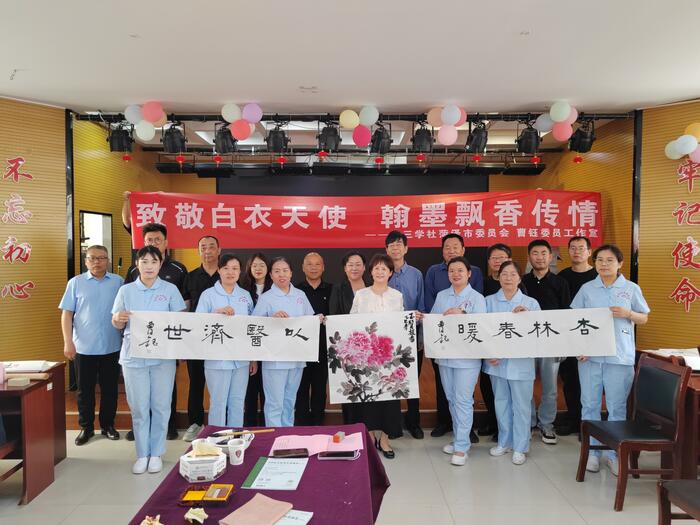 5月12日,在第114个国际护士节来临之际,九三学社菏泽市委会联合曹钰委员工作室,赴牡丹区中医医院开展“致敬白衣天使 、翰墨飘香传情”文化服务活动,社市委会主委、市仲裁办主任申瑞萍出席活动。