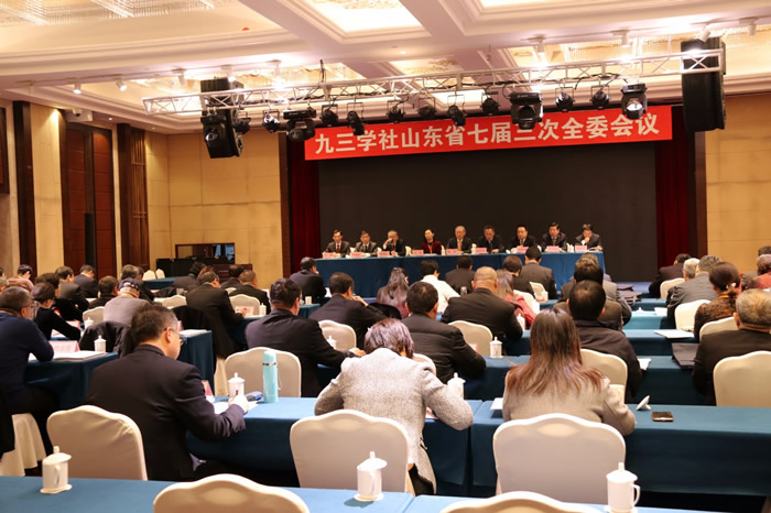 12月27日,九三学社山东省七届三次全委会议在济南召开。这次会议的主要任务是,传达学习九三学社十四届二中全会精神;讨论通过《九三学社山东省第七届常务委员会2018年工作报告》和《九三学社山东省第七届委员会监督委员会2018年工作报告》;审议通过《九三学社山东省委全委会议议事规则》;对社省委领导班子及成员进行民主评议;表彰2018年全省社务工作先进集体和先进个人。