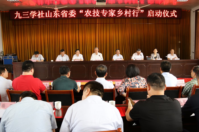 7月20日,九三学社山东省委“农技专家乡村行”活动在沂源县张家坡镇政府启动。省政协副主席、九三学社省委主委程林,省政协副秘书长曲伟,省人大常委、省政协机关党组成员、省纪委监委驻省政协机关纪检监察组组长周玉国,九三学社省委专职副主委宋尚桂,中共淄博市委常委、统战部部长李明,中共省委统战部一处处长陈琰,淄博市政协副主席、九三学社淄博市委主委王济众,中共沂源县委副书记、县长田晨光等同志出席启动仪式。来自山东农业大学、省农科院等的九三学社农技专家郝玉金、彭福田、万发春、李彦、李长松、杨洪强、曹长余、苗锦山,九三学社社员、山东艾诺吉医药科技有限公司董事长胡小泉,九三学社社员、童善儿童关爱中心主任李晓,张家坡镇中心小学学生共计200余人参加了本次活动。