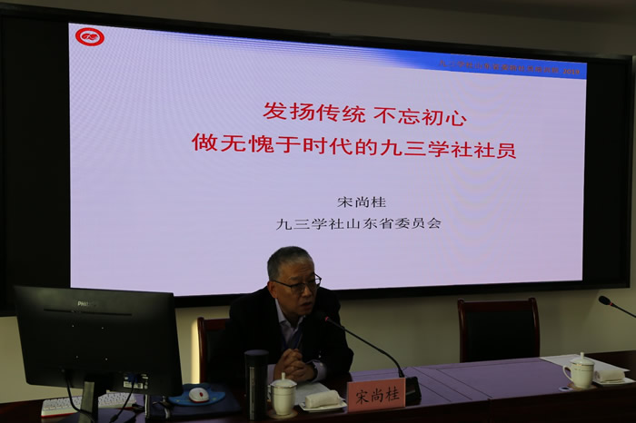 会上,宋尚桂副主委作了《发扬传统,不忘初心,做无愧于时代的九三学社社员》的讲座。宋主委指出:九三学社从创立之始就汇聚了中国最优秀的一代科学巨匠和学术大师,一直是民主与科学的倡导者、实践者。在社会发展对多党合作提出新要求的新时期,多党合作更应该加强制度化和规范化。他指出:作为九三学社社员,要继承传统,不忘初心,保持正确的政治方向;要树立使命意识,掌握履职能力,发挥好参政党成员的作用;要做好本职工作,为社会做贡献,为九三争光彩;要加强自身修养,投身进步潮流,做无愧于时代的九三社员。讲座结束后,宋尚桂副主委就如何保持九三学社特色、如何把本职工作和社务工作相结合、如何参与社会服务活动等问题与社员进行了现场互动和交流,宋主委以其渊博的学识、独到的见解和风趣的语言赢得了社员们的阵阵掌声。