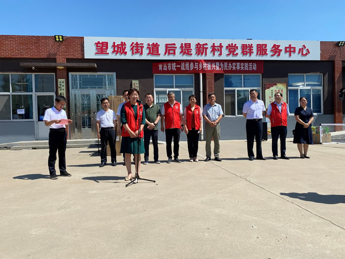 6月19日,青岛莱西市后堤新村格外热闹,周边9个自然村的村民们相约而来,一批身穿红马甲的志愿者们忙前忙后。原来是中共青岛市委统战部会同九三学社青岛市委正在开展为民办实事活动, 50余名志愿者兵分三路, 紧张有序地开展爱心捐赠、医疗巡诊、农技指导,以实际行动助力乡村振兴。中共青岛市委统战部正局级领导干部陈春雷,九三学社市委会驻会副主委于鹏、秘书长任红梅出席活动。