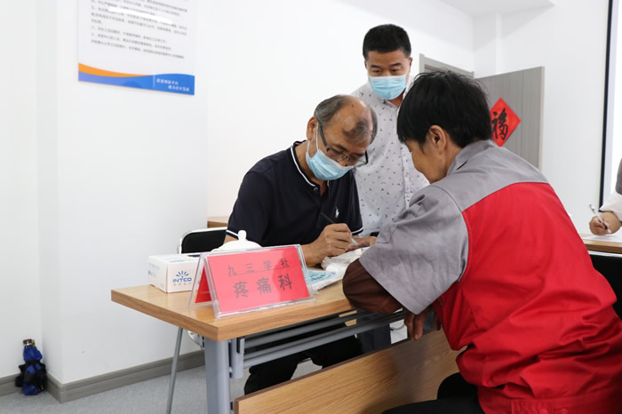 义诊现场气氛热烈,前来咨询问诊的社区物业人员络绎不绝。在九三学社威海市委会医疗卫生委员会姜义明主任的带领下,义诊现场紧张有序。医疗专家们耐心听取患者提出的问题,了解他们的病情病史,认真把脉诊断,细致讲解检查结果,提出切实可行的治疗建议,开具处方,进行用药指导。并为居民提供免费健康体检、颈肩腰腿疼康复按摩、针灸理疗等服务。