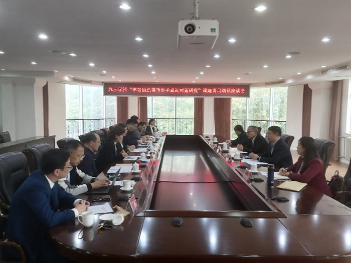 10月14日,省人大常务委员会委员、九三学社山东省委会专职副主委、内部监督委员会主任宋尚桂带队到九三学社青岛市委会就《市级组织领导班子建设对策研究》课题开展专题调研。省政协委员、九三学社山东省委会专职副主委李宗涛主持座谈会。九三学社青岛市委会副主委于鹏、于仁成、王霞,秘书长王波,社山东大学青岛校区委员会副主委张淑兰、社省委会组织部二级调研员刘海娟,社市委会部分常委、委员、基层组织负责人和社员代表参加座谈会。