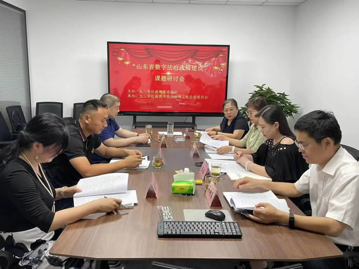 7月31日,九三学社淄博市委会召开“山东省数字法治政府建设”课题研讨会,九三学社淄博市委会副主委兼秘书长刘双、山东理工大学法学院院长王玲、九三学社淄博市委会法律工作专委会主任王玉清及课题组成员参加会议。