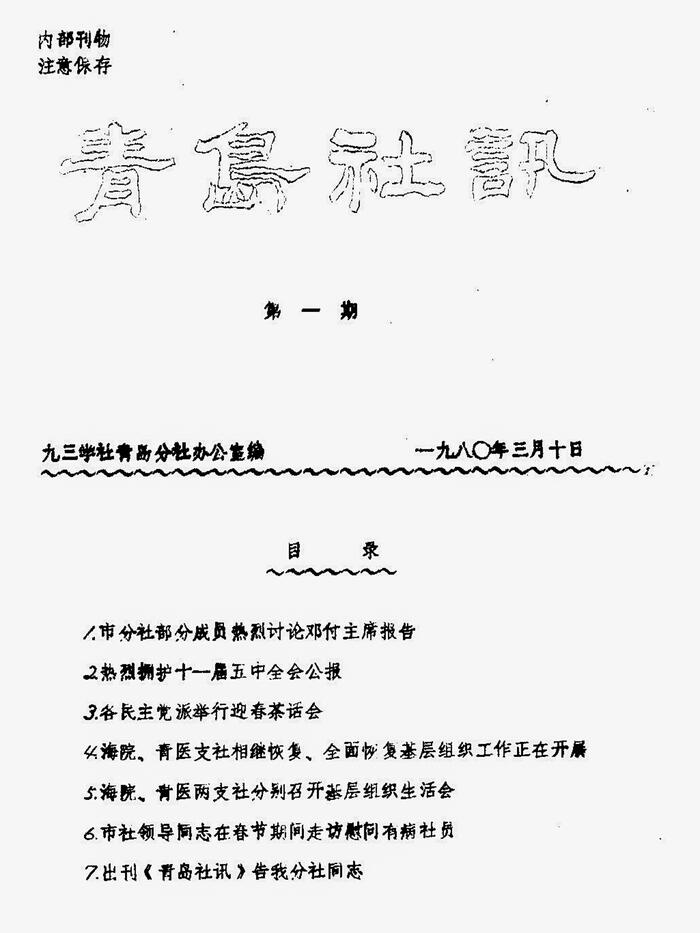 1980年3月10日,《青岛社讯》复刊。《青岛社讯》创建于1956年11月,1957年4月停刊,1978年青岛分社恢复组织活动后,为了让社中央的文件精神、社务工作交流、社员们为四化服务的活动情况以及社员们取得的成绩,尽快地传递给社员们,青岛分社决定将《青岛社讯》复刊。从此《青岛社讯》就成了社机关和社员之间沟通的桥梁。在青岛分社恢复时期,《青岛社讯》起到了重要作用。