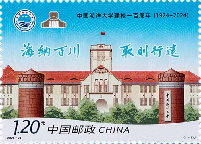 图为《中国海洋大学建校一百周年》纪念邮票。