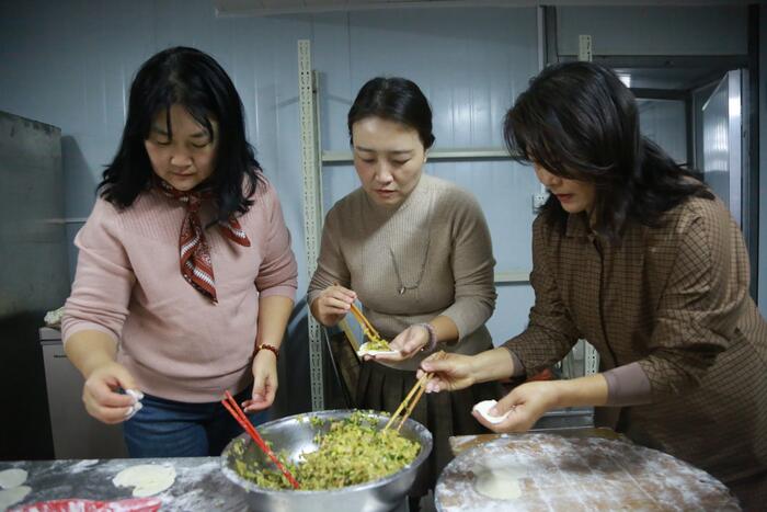 临近午饭,社员们加入包饺子队伍,用亲手制作的餐食传递敬老心意。社员们还认真了解老人食堂运营、食谱搭配等情况,记录老人需求与建议,承诺将持续关注食堂运营,提升老人用餐体验。