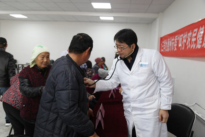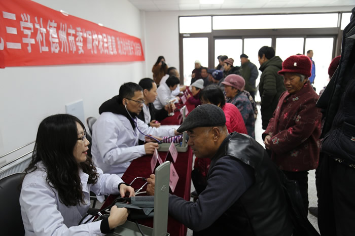 在乐陵市化楼镇韩桥村,九三学社德州市委社内6名医务专家为100多名村民进行了血压测量、心肺听诊等医疗服务,并就高血压、心脏病、颈椎痛等常见病接受现场咨询。