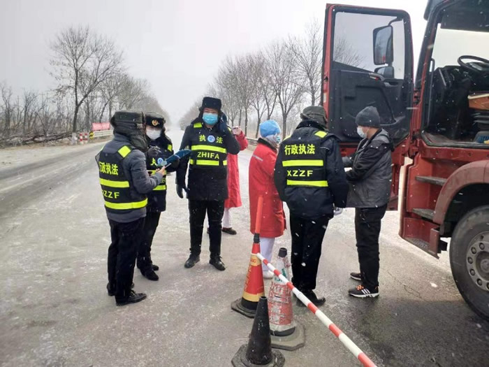 河口区支社社员杨玉宁主动申请到S315省道义务执勤,为抗击疫情贡献力量,在零下五六度的天气,认真坚守岗位,耐心登记信息。