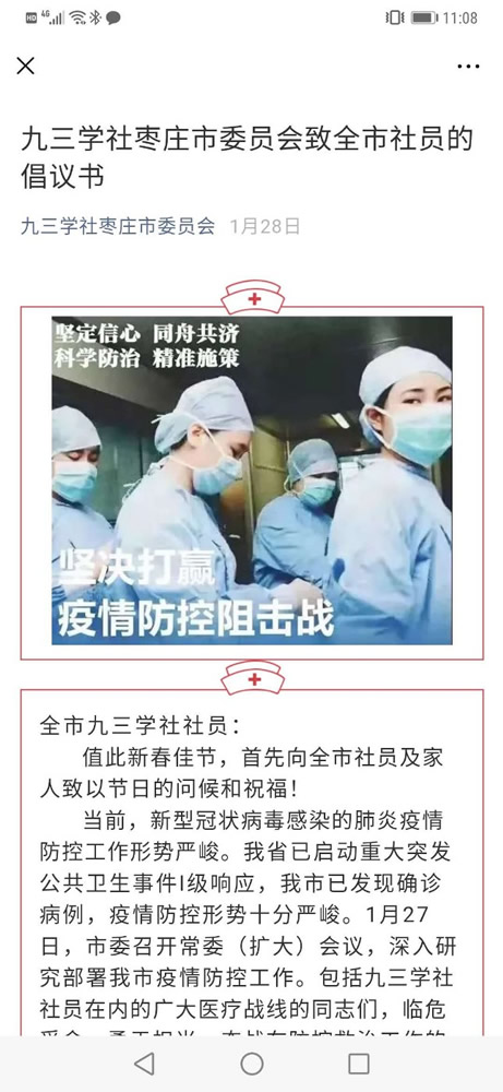 【各市委抗疫巡览•枣庄篇】 共克时艰 同心抗“疫”——抗击新冠肺炎疫情 山东九三人在行动之七