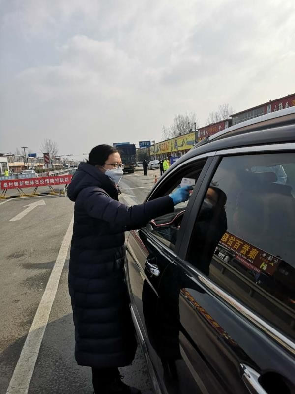 山亭区桑村镇基层干部王君玉负责帮包点瓜园村,由于进村主干道已经被土堆封闭,她只能在省道320就近下车再步行3里多路到达村口,开始每天的蹲守防控工作:与村两委干部一起入户宣传,指导村民做好居家隔离与个人防护。作为镇里值勤带班的负责人,她总是按时坚守在山滕交界处防控卡点,劝返外来车辆及人员,坚决守护好山亭的西大门。冬天室外值守背后的苦和累可想而知。冒着严寒,裹着厚厚的军大衣,她被人戏称为“大衣姐”,她跟女同事自嘲“我们是要温度不要风度的乡镇‘女汉子’”。