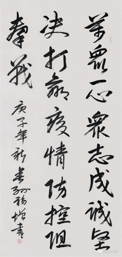 临沂籍书法名家、社员孙福增积极投身临沂市书法家协会发起的主题创作,拿出精品力作,为抗击疫情传递充满正气与大爱的笔墨力量。
