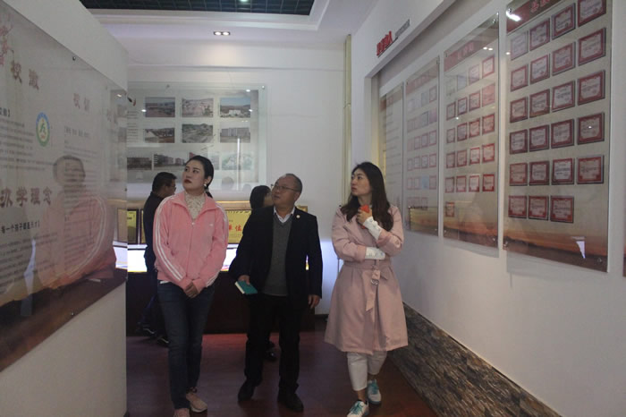 赵玥博一行参观了九三中学音乐培训室、舞蹈培训室、管乐排练室,观赏了合唱队、舞蹈队和管乐队的训练,随后进行座谈会并做交流发言。座谈会上,九三中学校长赵德聪就学校情况做了介绍,并对九三学社近8年来对九三中学的捐助情况做了详细介绍。赵玥博就社青岛市委青工委在“九三同心行”教育帮扶工作经验和成果方面做了交流,希望通过九三学社平台,在九三中学的心理咨询室配套建设、教师培训基金方面做一些努力,助力脱贫攻坚教育帮扶工作。