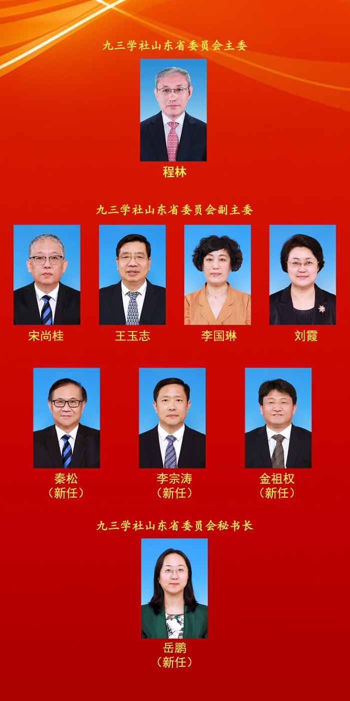 在刚刚闭幕的九三学社山东省第八次代表大会上,选举产生了新一届九三学社省委会领导班子,一起来认识一下吧。