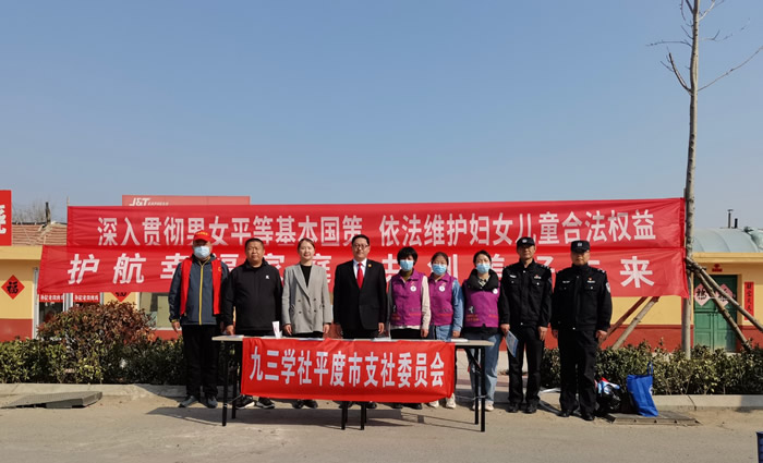 为深入贯彻落实习近平总书记关于保障妇女儿童合法权益重要指示精神,切实增强广大妇女群众维护自身合法权益的意识,营造关心、关爱、关注妇女儿童合法权益的良好氛围,3月30日,九三学社平度市支社委员会联合店子镇人民法庭、司法所、派出所、信访办、计生办等单位在店子镇大集开展以“护航幸福家庭 共创美好未来”为主题的妇幼维权普法宣传活动。