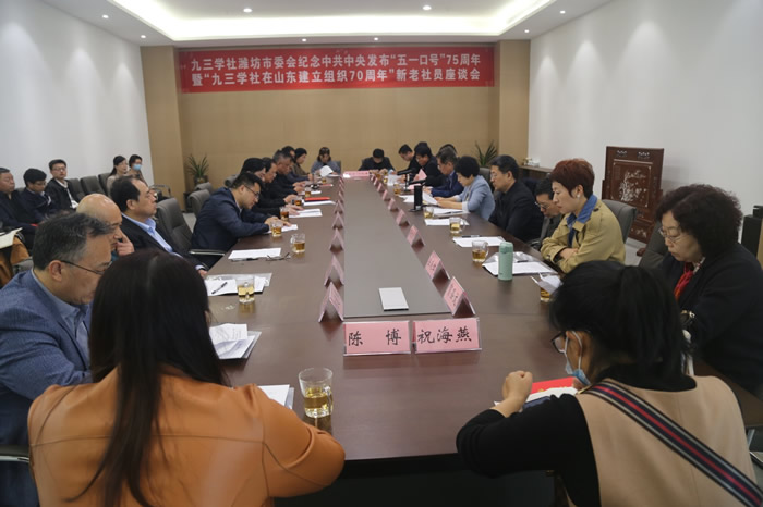 九三学社潍坊市委会举办纪念中共中央发布“五一口号”75周年暨“九三学社在山东建立组织70周年”新老社员座谈会