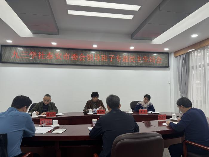 1月31日,九三学社泰安市委会召开2023年度领导班子“凝心铸魂强根基、团结奋进新征程”主题教育专题民主生活会。市人大常委会副主任、九三学社市委会主委王淑玲主持会议并讲话。社市委会副主委孙启凯、刘峰、诸葛玉平,秘书长郭启明出席会议。