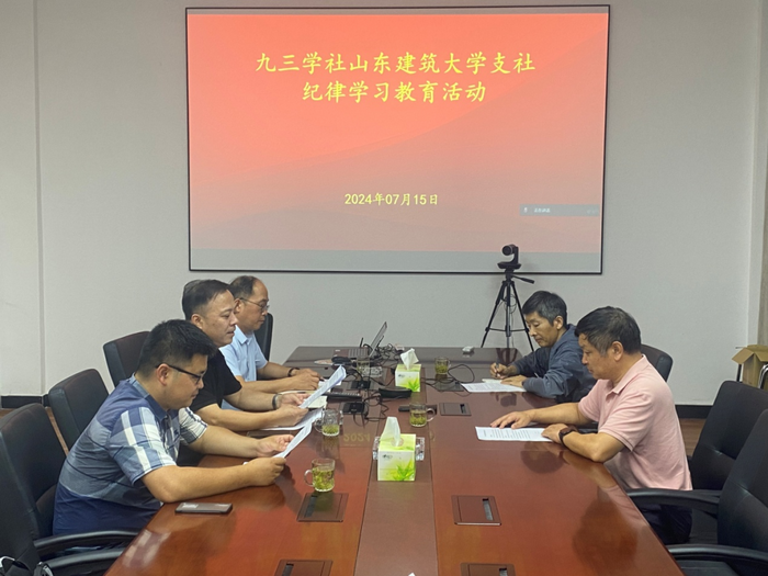 7月15日下午,九三学社山东建筑大学支社召开全体社员纪律学习教育专题会议。会议采用线上线下相结合的方式进行,支社领导班子成员、委员、全体社员参加会议。九三学社山东建筑大学支社主委任瑞波主持会议并进行动员讲话。