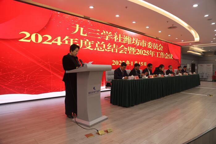 1月15日,九三学社潍坊市委员会召开2024年度总结会暨2025年工作会议。社省委会内部监督委员会委员、日照市政府参事董全宏出席,市政协副主席、社市委会主委于冬菊出席并作工作报告,中共潍坊市委统战部分管日常工作的副部长李全吉出席会议并讲话。社市委会副主委赵同祥、王建良、李莉,社市委会委员、二级调研员岳建利,秘书长尹敬国,社市委会委员、内部监督委员会委员、支社班子成员、2024年度受表彰社员和2024年度新发展社员等120余人参加会议。