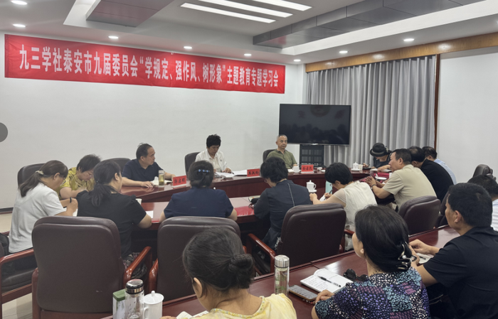 6月20日,九三学社泰安市委会在市政协召开“学规定、强作风、树形象”主题教育专题学习会。市人大常委会副主任、九三学社市委会主委王淑玲主持会议并授课。