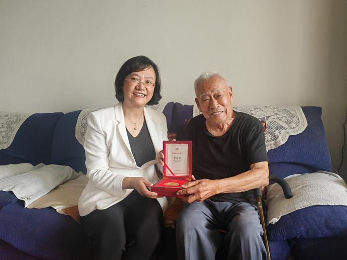 9月3日,在九三学社创建80周年之际,为传承我社优良传统,增强组织凝聚力,九三学社淄博市委会主委李寅萍专程走访老社员李庆萱,为他颁发“光荣在社40年”纪念章,并代表社组织向他致以诚挚问候和崇高敬意。九三学社淄博市委会副主委兼秘书长、三级调研员刘双陪同参加活动。 走访期间,李寅萍主委与老社员及家属亲切交谈,详细询问其身体状况、生活起居与家庭近况,叮嘱老社员保重身体,衷心感谢老社员长期以来对社务工作的支持与付出。李寅萍指出,老社员是九三学社的宝贵财富,他们的奋斗经历与精神品格,是激励全体社员接续前行的重要力量。多年来,广大老社员始终秉持初心、恪尽职守,用实际行动践行了“爱国、民主、科学”的初心,彰显了老一辈社员的责任与担当。 获颁纪念章的老社员李庆萱对社组织的关心深表感谢,表示,将继续关注社组织动态,尽己所能为九三学社事业发挥余热,同时勉励青年社员要传承好九三精神,在新时代展现新作为。 下一步,九三学社淄博市委会将持续做好老社员关怀工作,用心用情解决老社员实际需求。以“光荣在社40年”纪念章颁发为契机,引导更多青年社员以老社员为榜样,传承优良传统、勇担时代使命,为九三学社事业发展与淄博高质量发展贡献更多智慧和力量。(九三学社淄博市委会供稿) |