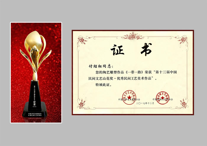 (傅绍相陶艺雕塑作品《一带一路》荣获中国民间文艺“山花奖”) |