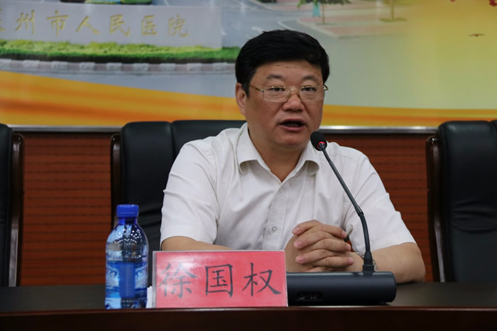 徐国权在致辞中说, “亮康行动”是一项由九三学社中央发起,面向革命老区、西部山区、地震灾区和少数民族地区的贫困白内障患者免费实施复明手术的综合性社会服务活动,帮助患者解除常年处于失明或半失明状态的痛苦,发挥“复明一个人,幸福一家人,稳定一群人”的良好作用,并使之成为我国扶贫助残、防盲治盲事业的组成部分,为打赢脱贫攻坚战和全面建成小康社会贡献力量。山东鲁南眼科医院是九三学社“亮康行动”的发起单位之一,先后在山东、贵州、青海、甘肃和四川等地开展活动,他们医德高尚,医术精湛,所到之处广受赞誉。自2007年在贵州威宁正式启动以来,“亮康行动”已在贵州、西藏、内蒙等21个省区为6.7万余名白内障患者解除眼疾痛苦。他希望山东鲁南眼科医院与莱州市人民医院的医卫专家通力合作,开展好以“亮康行动”为主题的系列帮扶活动。