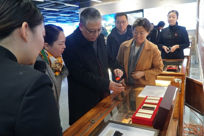 在宏济堂展厅,调研组一行全面了解了企业的百年历史、百年产品、百年文化,重点了解了获得国家科技进步一等奖的人工麝香酮、麝香心痛宁、安宫牛黄丸等新产品特点、功能主治,询问了销售价格和销售情况。宋尚桂表示,人工麝香酮是濒危珍稀药材替代研究的一个示范,代表了中药材科技创新的一个方向,值得大力推广。
