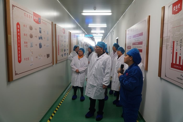 在中试车间,调研组看到24节气科普长廊,认为将健康养生内涵、中药材知识与传统二十四节气所倡导的养生观相结合的做法很有创意,寓教于乐、寓游于学,值得宣传。