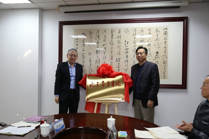会谈后,程林主委出席了九三学社山东省委与济南大学共建的“九三齐鲁书苑”揭牌仪式,宋尚桂副主委与王玉华副书记共同为“九三齐鲁书苑”揭牌。王玉华副书记在揭牌仪式致辞中希望“九三齐鲁书苑”成立后,将高校的学科与专业优势与社会服务结合起来,让高校的文化资源为社会传播精神食粮,弘扬正能量,为中华传统文化的传承发展作出贡献,成为具有广泛影响力的社会服务品牌。济南大学党委统战部部长商华宣读了“九三齐鲁书苑”社会服务团队专家名单。“九三齐鲁书苑”负责人范丽敏教授表示,“九三齐鲁书苑”将勇挑时代重任,秉承“民主、科学”宗旨,大力弘扬中华优秀传统文化,把“九三齐鲁书苑”打造成一张有温度的社会服务品牌。