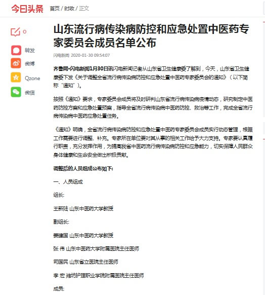 按照《通知》要求,专家委员会成员将及时研判山东流行病传染病疫情动态,研究制定中医药防控方案和应急处置预案,指导流行病传染病中医药防控、救治等工作,完成全省流行病传染病中医药应急处置任务。作为中医专家,李宏被列入待赴武汉专家,随时准备支援武汉抗击疫情。