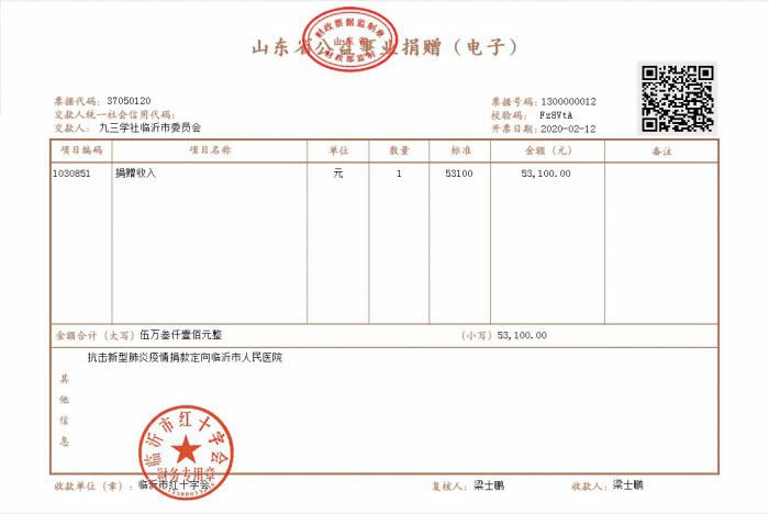 为进一步团结全社力量抗击新型冠状病毒感染的肺炎疫情,九三学社临沂市委向全市广大社员发出倡议:全体社员在自愿的前提下缴纳社费,以实际行动积极参与到全市疫情防控阻击战中。社临沂市委领导、广大社员和机关干部积极响应倡议,为抗击新型冠状病毒肺炎疫情奉献自己的爱心。2天之内,广大社员缴纳特殊社费53100元。这些款项已通过红十字会定向捐赠给市人民医院,用于疫情防控。