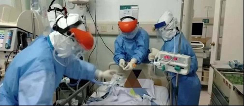 第二天一早到隔离病房报到,病房负责人李庆方主任详细介绍了人员安排、排班模式、患者情况,重点强调一定要按规范做好个人防护,牢记穿脱防护服步骤及清洁区和污染区的划分。我很快地熟悉了情况,马上进入工作状态。因为该病区部分患者为急危重症,所以配备了高流量湿化氧疗机、血气分析仪、无创呼吸机、有创呼吸机、ECMO(人工心肺机)、床旁血液净化机等先进仪器设备。为了最大限度减少交叉感染风险,每个房间安装了空气消毒机,配备了5G远程查房车,临床医生既可以在办公室随时对病人进行视频查房、交流,具体指导护理人员工作,又尽可能减少了目前极其紧缺的防护服消耗。