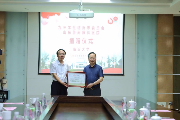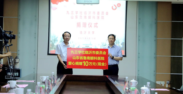 孙常生对九三学社临沂市委和山东鲁南眼科医院对临沂大学一直以来的关心和支持表示感谢。他表示,临沂大学将继续以矢志不渝的奋斗精神,锐意进取,不断开拓创新,为经济社会发展输出“有理想、有本领、有担当”的高素质创新型人才。 九三学社临沂市委秘书长庞丽萍,九三学社临沂市直五支社主委、山东鲁南眼科医院院长高富军、九三学社临沂大学支社委员、临沂大学教务处副处长朱凤春、临沂大学马克思学院党委书记徐东升等参加捐助仪式。(九三学社临沂市委 杨秀梅)