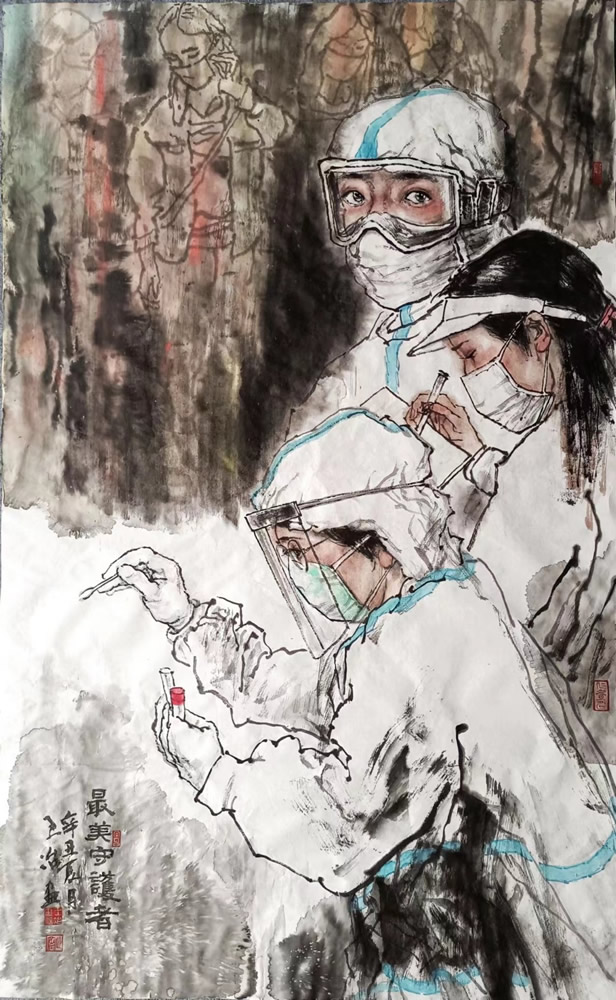 为了鼓舞抗疫的士气和斗志,九三学社烟台市委的书画家们在积极参加疫情防控阻击战的同时,用笔墨共绘同心战“役”,以书画讴歌抗“疫”壮举,致敬一线抗“疫”英雄,抒发战胜疫情的信心和决心。现撷取其中部分作品加以分享。