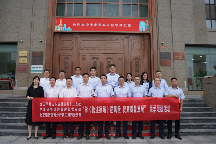 7月23日下午,社省委会财经委十二支社携手北京银行济南分行机关第四党支部、中泰证券风险管理部党支部、中泰证券审计稽核部党支部,成功举办“学《习近平关于金融工作论述摘编》防风险,促高质量发展”联学联建活动。九三学社中央资源环境委员会委员、九三学社省委会财经委十二支社主委、中泰证券风险管理部副总经理张敏及九三学社省委会财经委十二支社6名社员参加活动。