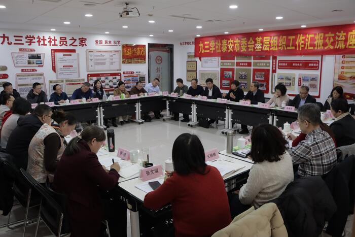 3月5日,九三学社泰安市委会基层组织工作汇报交流座谈会在九三学社山东健源生物科技有限公司社员之家召开。泰安市人大常委会副主任、社市委会主委王淑玲主持会议并讲话,副主委刘峰、诸葛玉平、肖玲,秘书长郭启明出席会议,全市社各基层组织负责人参加会议。